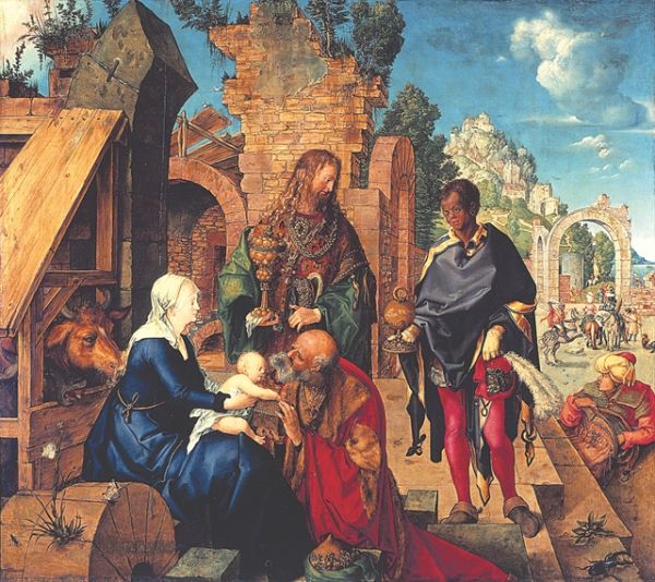 Στη «Λατρεία των Μάγων», που ο Αλμπρεχτ Ντίρερ ζωγράφισε στη Νυρεμβέργη το 1504, ένας νεαρός μαύρος άνδρας με κοντά μαλλιά και κόκκινα κολάν στέκεται κομψά, με τη στάση των αγαλμάτων της κλασικής αρχαιότητας, κρατώντας ένα σφαιρικό χρυσό κύπελλο γεμάτο μύρο. Ο Ντίρερ κάνει την αυτοπροσωπογραφία του και εμφανίζεται μέσα στον πίνακά του ως ο επόμενος βασιλιάς με τα μακριά λυτά μαλλιά, ο οποίος γυρίζει το κεφάλι για να εξετάσει το δώρο του Bαλτάσαρ. Ισως και τα πόδια του, καθώς ρίχνει στον μαύρο βασιλιά ένα βλέμμα ανάλογο με εκείνο που έδινε θαυμάζοντας τους άνδρες. Αλλωστε ο ίδιος ο ζωγράφος είχε γράψει για τους σέξι στρατιώτες που συνάντησε στο ταξίδι του στη Βενετία. Μέσα σε αυτόν τον πίνακα και με αυτό το βλέμμα, ο Ντίρερ κάνει έναν σαφή υπαινιγμό για τις ερωτικές προτιμήσεις του.