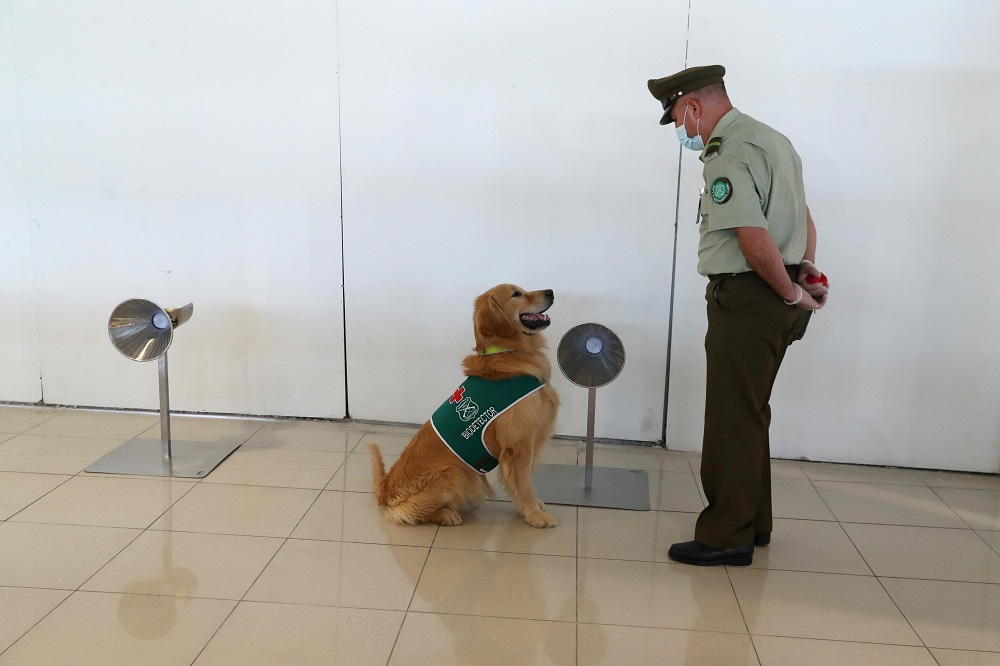 Τα τεστ... κοροναϊού έχει αναλάβει στο διεθνές αεροδρόμιο του Σαντιάγο, στη Χιλή, ειδική επιχειρησιακή ομάδα που αποτελείται από Γκόλντεν Ριτρίβερ, Λαμπραντόρ και τους αστυνομικούς χειριστές τους.