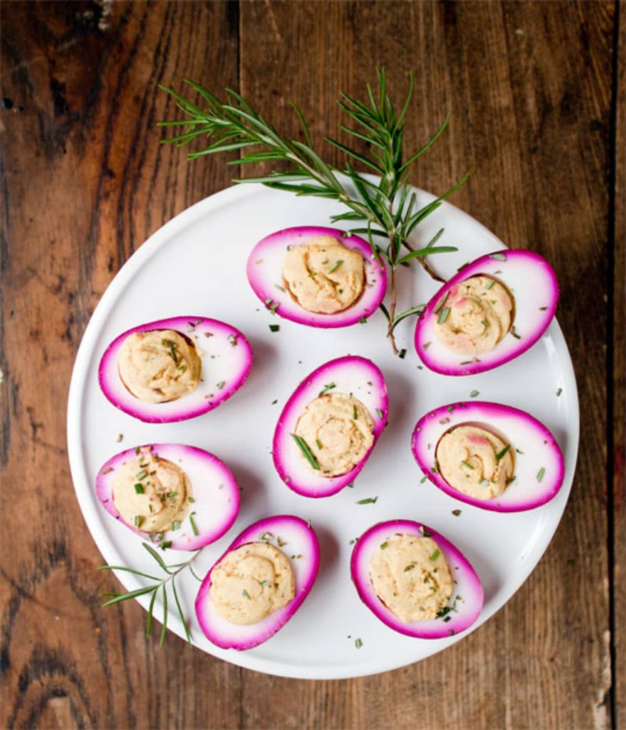 Τα ρετρό γεμιστά αυγά ανανεώνονται και γίνονται μωβ-ένα εντυπωσιακό και εύκολο ορεκτικό για το γιορτινό τραπέζι και όχι μόνο.