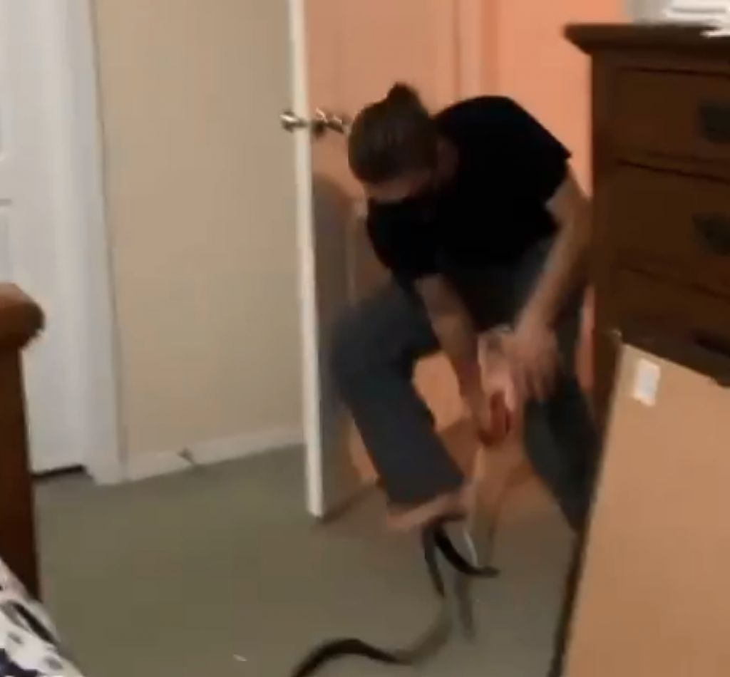 Γυναίκα σε viral βίντεο φρικάρει τον άντρα της με μια ζώνη επειδή εκείνος φοβάται τα φίδια – Βίντεο