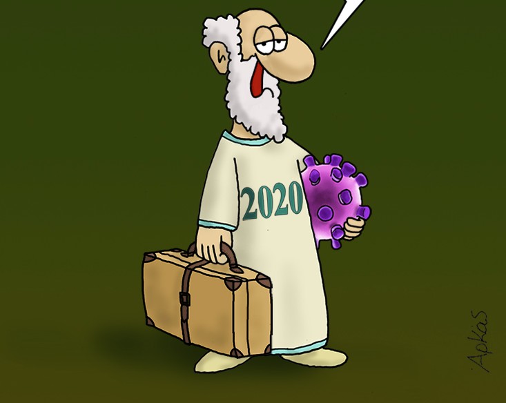 Στο νέο σκίτσο του Αρκά το 2020 ετοιμάζεται φύγει ετοιμάζεται το 2020. Και μαζί με αυτό παίρνει και τον κοροναϊό.
