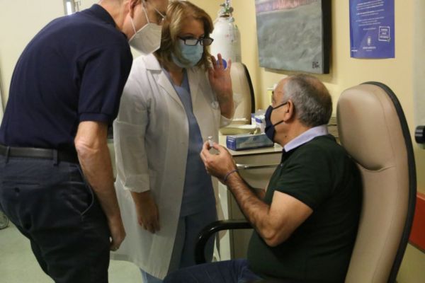 Πρώτος εμβολιάστηκε, νωρίς το πρωί, ο γγ Δημόσιας Υγείας, Παναγιώτης Πρεζεράκος, ενώ ακολούθησαν ο καθηγητής Παιδιατρικής, λοιμωξιολόγος Γιώργος Συρογιαννόπουλος, ο αιματολόγος-διευθυντής Ιατρικής Υπηρεσίας ΠΓΝΛ, Γιώργος Βασιλόπουλος, η διευθύνουσα Νοσηλευτικής ΠΓΝΛ, Κωνσταντίνα Ζησιμοπούλου και ο διευθυντής ΜΕΘ ΠΓΝΛ, Επαμεινώνδας Ζακινθυνός.