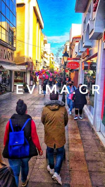 Σύμφωνα με το ρεπορτάζ του evima.gr οι εμπορικοί δρόμοι της Χαλκίδας γέμισαν με πολίτες που κατέβηκαν για ψώνια ή βόλτα, ενώ είχαν προγραμματιστεί και πολλές αγορές μέσω click away στο λιανεμπόριο.