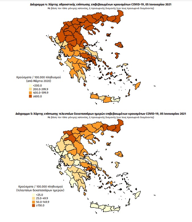 Ο χάρτης αποτυπώνει τη γεωγραφική κατανομή των συνολικών κρουσμάτων COVID-19 (από την αρχή της επιδημίας) ανά Περιφερειακή Ενότητα της χώρας, με βάση την δηλωθείσα διεύθυνση μόνιμης κατοικίας του ασθενούς, ή τη διεύθυνση προσωρινής διαμονής για τους τουρίστες και άλλους προσωρινά διαμένοντες στην Ελλάδα. Συμπεριλαμβάνονται τόσο κρούσματα με ιστορικό ταξιδίου (“εισαγόμενα”) όσο και κρούσματα με πιθανή εγχώρια μετάδοση