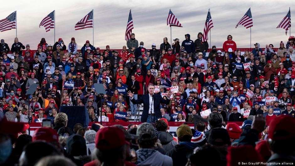 Από τώρα υψώνει τη φωνή του ζητώντας στήριξη από τους οπαδούς του Ντόναλντ Τραμπ. Μια ώρα δρόμο από την Ατλάντα, σε μια από τις περιοχές της Τζόρτζια όπου ζουν μόνο λευκοί, εμφανίζεται σε μία προεκλογική εκστρατεία.