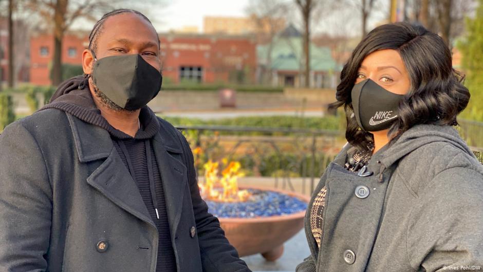 Ο Κάρεμ και η Τζέσικα Στέρλινγκ μπροστά από τη φλόγα που καίει συνεχώς έξω από το μνημείο για τον Μάρτιν Λούθερ Κινγκ