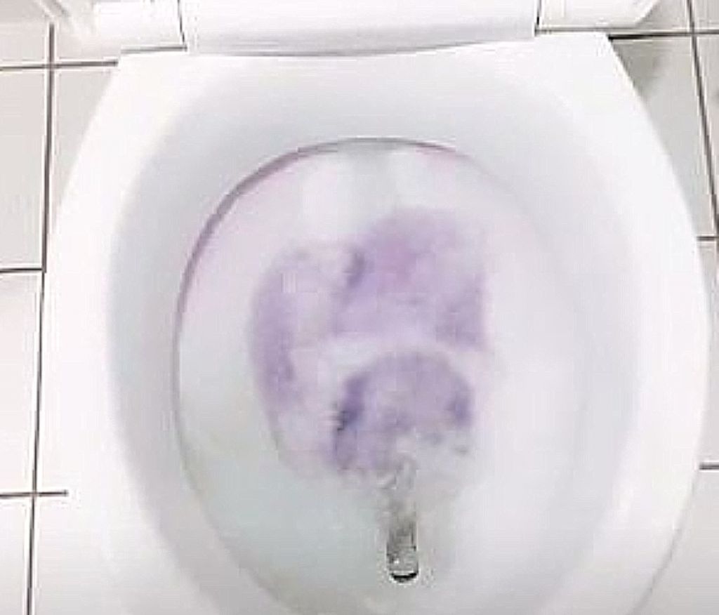 Δημιουργεί λωρίδες από μωβ και ροζ καθαριστικό γύρω από τη λεκάνη της τουαλέτας μέχρι να μοιάζει με κάτι που θα περίμενε κανείς να δει σε ένα καρναβάλι ή τσίρκο.