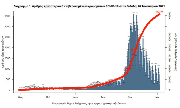Όπως αναφέρθηκε παραπάνω, ο αριθμός αυτός δεν είναι ενδεικτικός της επιδημιολογικής κατάστασης της χώρας μας, αφού σήμερα ανακοινώθηκαν τα αποτελέσματα των τεστ που διενεργήθηκαν την Τετάρτη, όπου ήταν η αργία των Θεοφανίων. Όπως είναι αναμενόμενο, στις αργίες διενεργούνται λιγότερα τεστ, αφού τα διαγνωστικά κέντρα υπολειτουργούν.