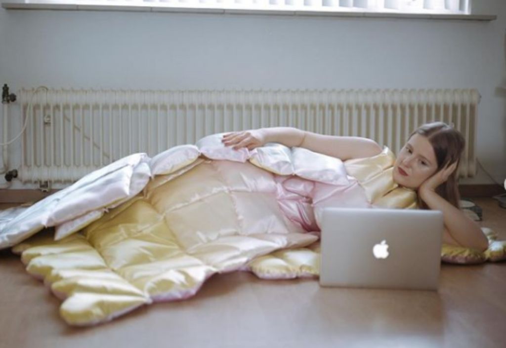 Τρεις μαξιλαρωτές κρεασιόν, σχεδιασμένες για να φοριούνται κατά τη διάρκεια βινετοκλήσεων στην απομόνωση λόγω της πανδημίας, δημιούργησε η απόφοιτος της Design Academy Eindhoven, Santa Kupča. Κάθε μία από τις τρεις κρεασιόν αντιπροσωπεύει μια διαφορετική «κοινότοπη» πλευρά της παραμονής στο σπίτι κατά τη διάρκεια του εγκλεισμού.