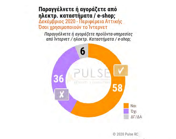 Οι 6 στους 10 από αυτούς (58%), πλέον, αξιοποιούν και τα ηλεκτρονικά καταστήματα / e-shop, παραγγέλνοντας/αγοράζοντας προϊόντα και υπηρεσίες! Σε όλες τις ηλικιακές ομάδες (εκτός της «60 και άνω») και σε όλους τους εργαζόμενους, το αντίστοιχο ποσοστό είναι «πλειοψηφικό».