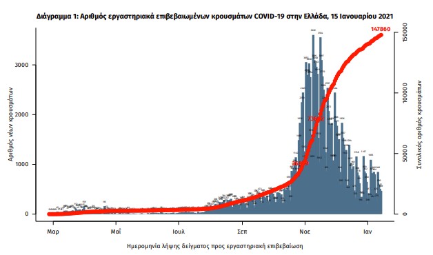 Χαμηλό αριθμό κρουσμάτων κοροναϊού ανακοίνωσε και σήμερα η χώρα μας, με την επιδημιολογική εικόνα να παραμένει σε καλή κατάσταση, επιτρέποντας έτσι το άνοιγμα των καταστημάτων, από τη Δευτέρα 18 Ιανουαρίου