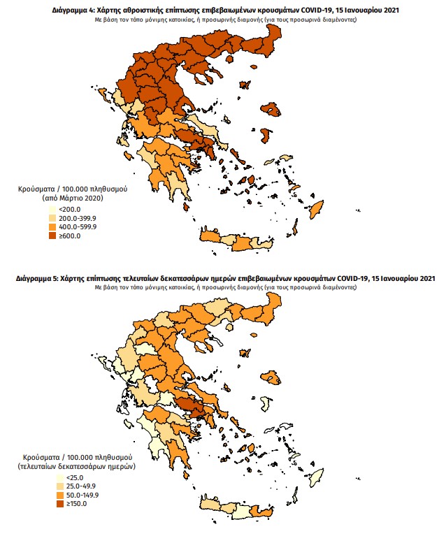 Ο χάρτης αποτυπώνει τη γεωγραφική κατανομή των συνολικών κρουσμάτων COVID-19 (από την αρχή της επιδημίας) ανά Περιφερειακή Ενότητα της χώρας, με βάση την δηλωθείσα διεύθυνση μόνιμης κατοικίας του ασθενούς, ή τη διεύθυνση προσωρινής διαμονής για τους τουρίστες και άλλους προσωρινά διαμένοντες στην Ελλάδα. Συμπεριλαμβάνονται τόσο κρούσματα με ιστορικό ταξιδίου (“εισαγόμενα”) όσο και κρούσματα με πιθανή εγχώρια μετάδοση.