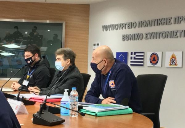 Ολοκληρώθηκε η ευρεία σύσκεψη υπό τον Υπουργό Προστασίας του Πολίτη, Μιχάλη Χρυσοχοΐδη, παρουσία του Υφυπουργού Πολιτικής Προστασίας και Διαχείρισης Κρίσεων, Νίκου Χαρδαλιά και με συμμετοχή του Γενικού Γραμματέα Υποδομών, Γιώργου Καραγιάννη στο Κέντρο Επιχειρήσεων της Πολιτικής Προστασίας (κτίριο Φάρος).