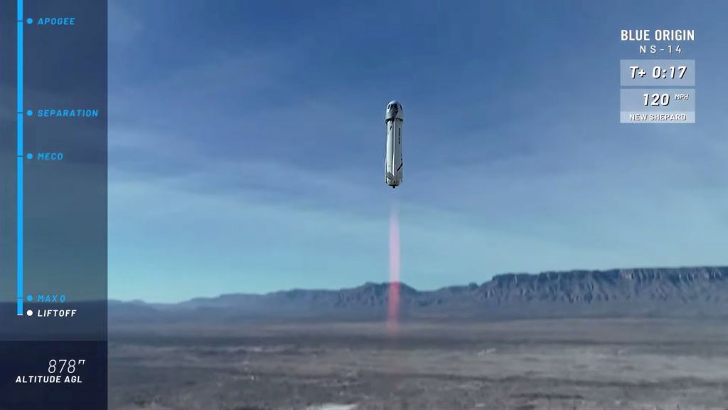 Το υποτροχιακό σκάφος New Shepard της Blue Origin, μιας εταιρείας του Τζεφ Μπέζος, μετέφερε ένα ανδρείκελο σε μια σύντομη πτήση πάνω από το Τέξας, σε μια τελευταία πρόβα πριν αρχίσουν οι κρατήσεις για τουρίστες.