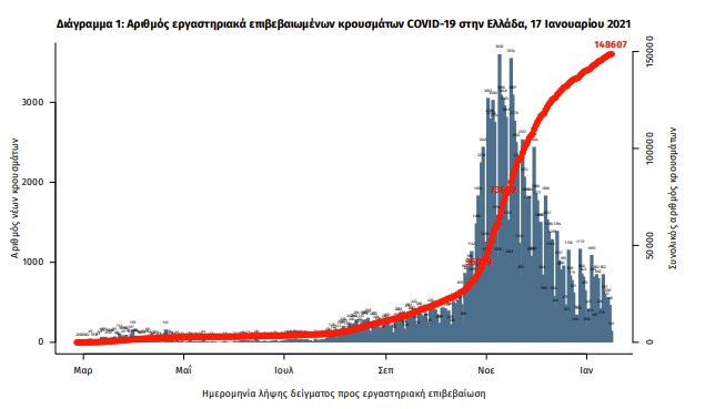 Έτσι, ο συνολικός αριθμός των κρουσμάτων ανέρχεται στα 148.607, εκ των οποίων 52.1% άνδρες. Κατά την ιχνηλάτιση βρέθηκε ότι 5.739 (3.9%) θεωρούνται σχετιζόμενα με ταξίδι από το εξωτερικό και 45.466 (63.7%) είναι σχετιζόμενα με ήδη γνωστό κρούσμα.,