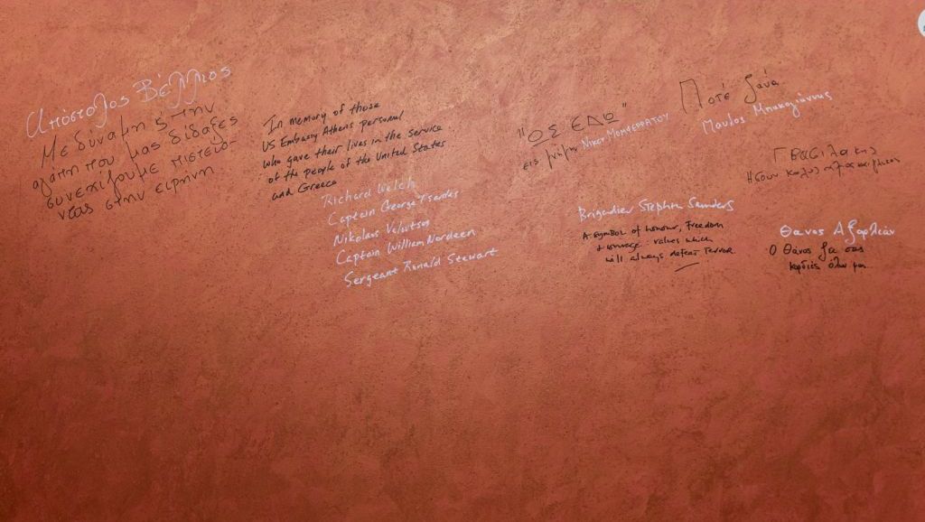 Στην εκδήλωση παρευρέθηκαν και άφησαν το μήνυμα τους στον «Τοίχο Μνήμης» η Βουλευτής της Ν.Δ. Ντόρα Μπακογιάννη, ο Πρέσβης των ΗΠΑ Τζέφρυ Πάιατ, η Πρέσβης της Βρετανίας Κέιτ Σμιθ, η σύζυγος του Γιώργου Βασιλάκη, ο αδερφός του Θάνου Αξαρλιάν, η κόρη του Απόστολου Βέλλιου και ο γιος του Νίκου Μομφεράτου.