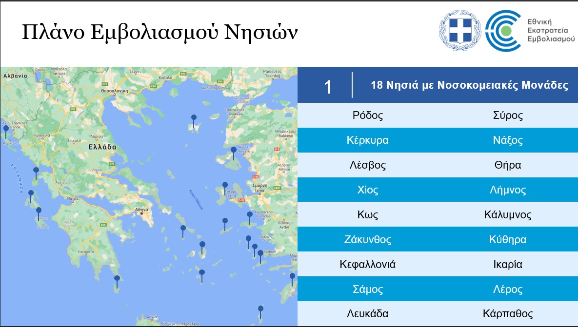 Αφορά σε 8 νησιά όπου υπάρχουν ήδη νοσοκομειακές μονάδες. Σε αυτά τα νησιά έχει ξεκινήσει ήδη ο εμβολιασμός των υγειονομικών από 11 Ιανουαρίου.