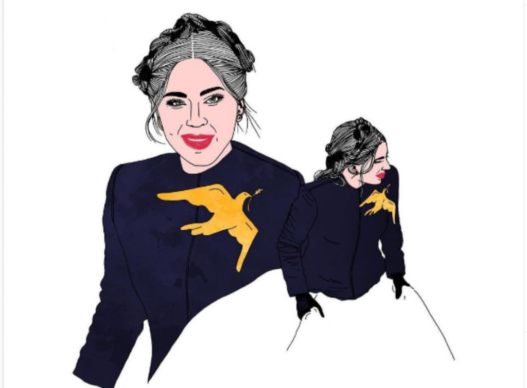 Στη συνέχεια, η Lady Gaga ανέβασε στο Twitter μία φωτογραφία της καρφίτσας της και σχολίασε πως το περιστέρι που κρατά ένα κλαδί ελιάς συμβολίζει την ειρήνη που χρειάζεται να υπάρχει ανάμεσα στους ανθρώπους.