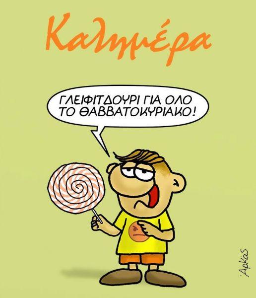 Έτσι, ο Θαναθάκηθ μας λέει καλημέρα και «γλειφιτδούρι για όλο το Θαββατοκυριακο!».