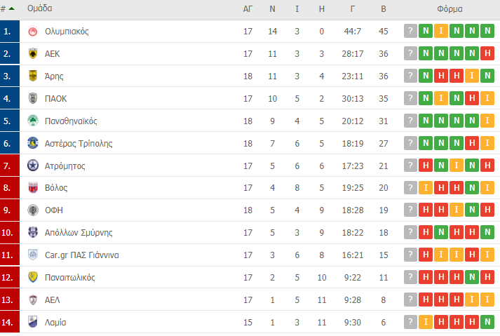 Βαθμολογία : Έπιασε ΑΕΚ στη δεύτερη θέση ο Άρης, στο -5 παρέμεινε ο Παναθηναϊκός