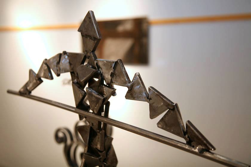 Στο εργαστήριο του γλύπτη Κώστα Καμπερίδη στην Κατερίνη Πιερίας, ανάμεσα σε σιδερένιες φιγούρες και κάθε είδους μεταλλικό αντικείμενο, από γρανάζια μέχρι φτυάρια, «ξύπνησε» εδώ και χρόνια μέσα στο σίδερο και ένας «μετανάστης» από την καστιλιάνικη Λα Μάντσα. O Δον Κιχώτης.