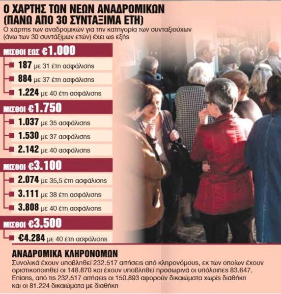 Καθώς οι νέοι συνταξιούχοι αναμένεται να λάβουν τις αυξήσεις τους τον Φεβρουάριο και οι παλαιοί τον Μάρτιο, τα αναδρομικά θα είναι 17-18 μηνών.