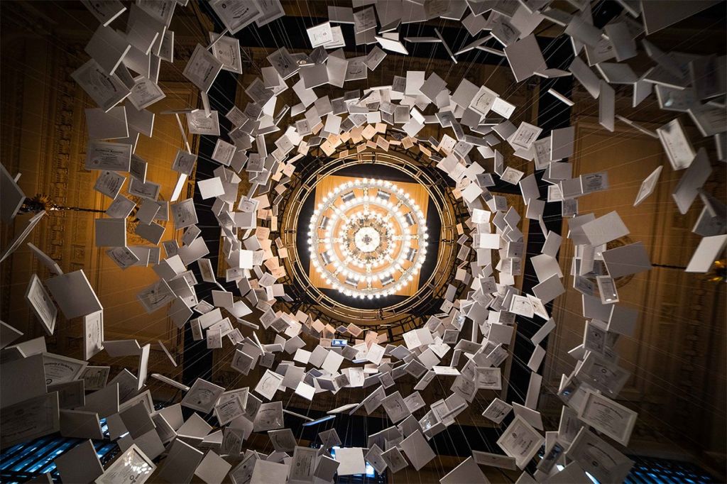 Με τίτλο «Da Vinci of Debt», το έργο αποτελείται 2.600 γνήσια πτυχία πανεπιστημίων που αιωρούνται σχηματίζοντας ένα «ανεμοστρόβιλο» και αποσκοπεί να τραβήξει την προσοχή στο τεράστιο πρόβλημα των φοιτητικών δανείων και των χρεών που ταλαιπωρούν τους νέους στις Η.Π.Α.