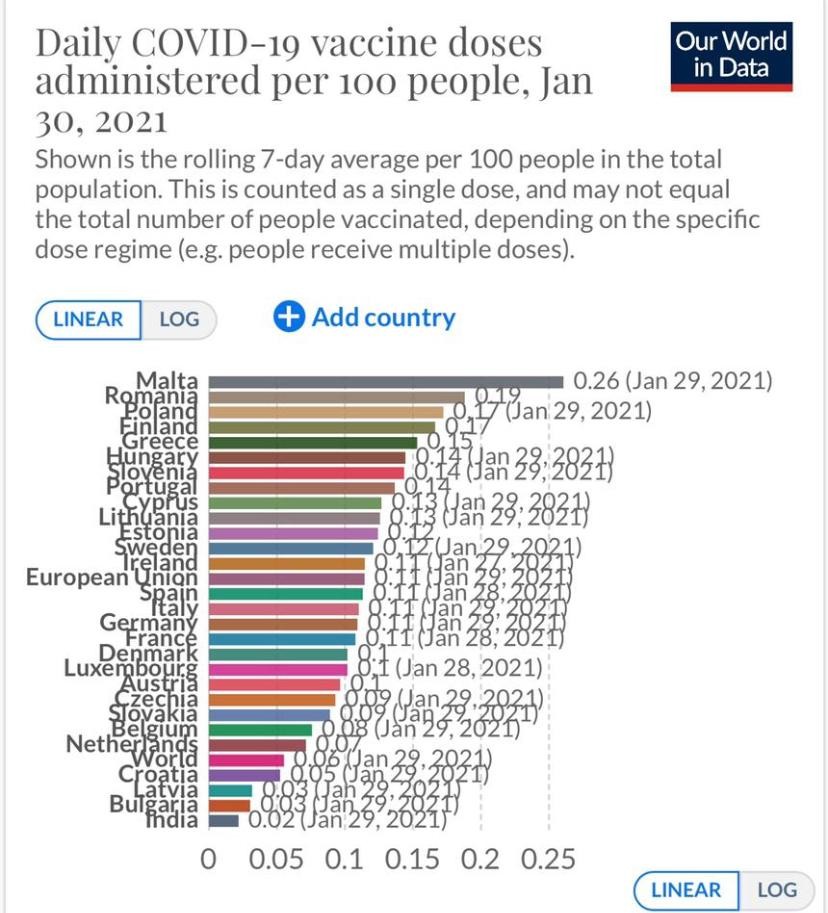 Στην πραγματικότητα ο κ. Σκέρτσος με εκτενή δημόσια ανάρτηση του ανέφερε επί λέξει «Ο ρυθμός εμβολιασμών υπερβαίνει πλέον κατά μέσο όρο (7ήμερος κυλιόμενος δείκτης) τις 15.500 ημερησίως και μας κατατάσσει στην 5η θέση μεταξύ των 27 της ΕΕ ως προς το ποσοστό του πληθυσμού που εμβολιάζεται καθημερινά».