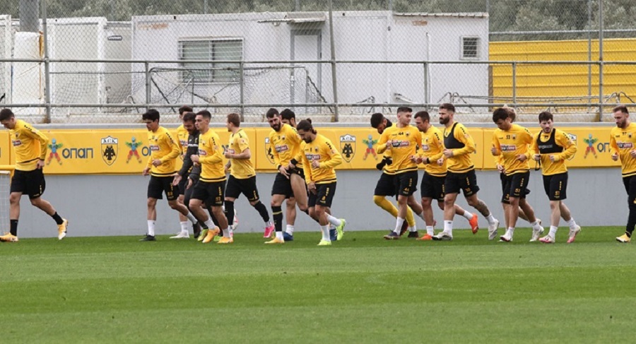 «Ολοκληρώθηκε η σημερινή προπόνηση των ποδοσφαιριστών της ΑΕΚ στα Σπάτα.