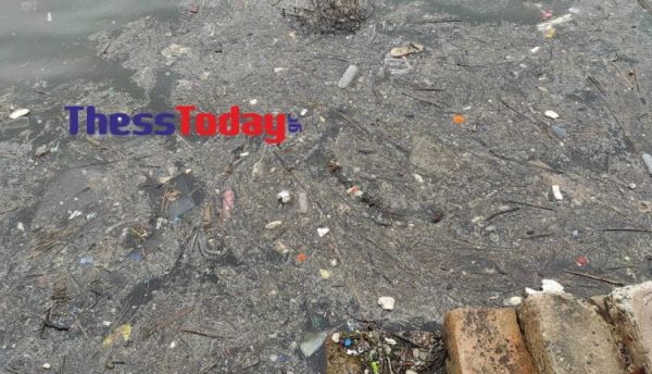 Πλαστικά μπουκάλια, τελάρα από φελιζόλ ακόμα και παντόφλες επέπλεαν στα νερά του Θερμαϊκού κόλπου, στο ύψος του Λευκού Πύργου.