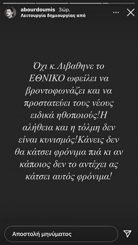 Αλέξανδρος Μπουρδούμης σε Στάθη Λιβαθινό : «Κανείς δε θα κάτσει φρόνιμα πια»