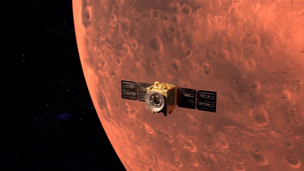 Επτά μήνες μετά την εκτόξευσή του, το σκάφος Amal («ελπίδα» στα αραβικά) πυροδότησε τους κινητήρες του για να επιβραδύνει και να αιχμαλωτιστεί από το βαρυτικό πεδίο του κόκκινου πλανήτη.