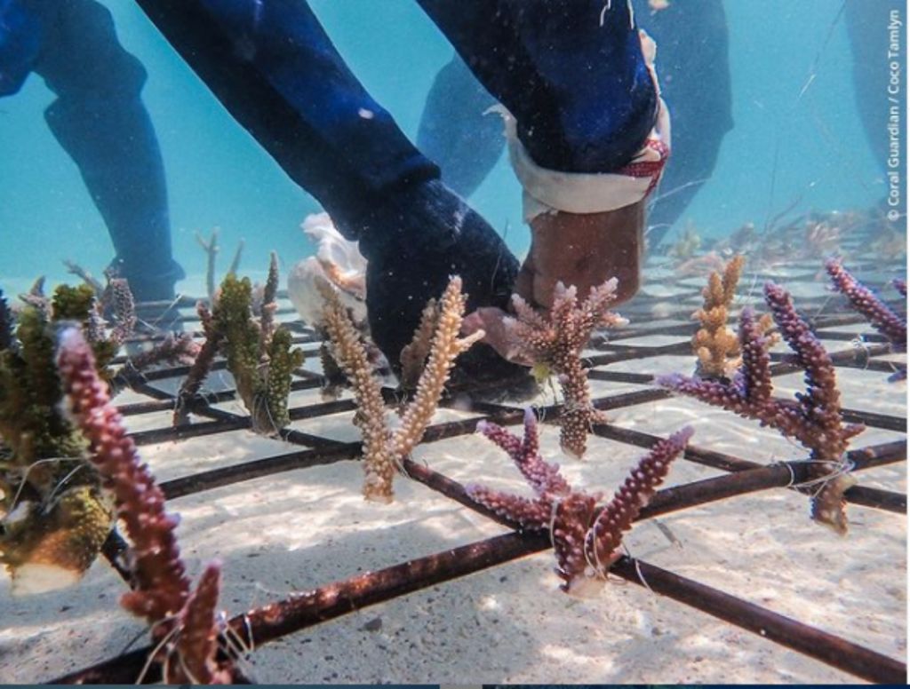 Αντιμέτωπη με αυτήν την οικολογική κατάσταση έκτακτης ανάγκης, η ομάδα Coral Guardian, ένας οργανισμός που αγωνίζεται για την προστασία των κοραλλιογενών οικοσυστημάτων με τη συμμετοχή τοπικών πληθυσμών, προτείνει την υιοθέτηση ενός κοραλλιού, το οποίο στη συνέχεια θα μεταφερθεί στα ανοικτά των ακτών της Ινδονησίας.
