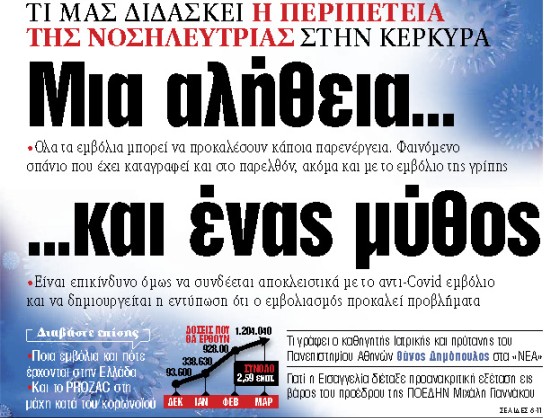 Τι μας διδάσκει η περιπέτεια της νοσηλεύτριας στην Κέρκυρα • Ολα τα εμβόλια μπορεί να προκαλέσουν κάποια παρενέργεια • Είναι επικίνδυνο όμως να συνδέεται αποκλειστικά με το αντι-Covid εμβόλιο