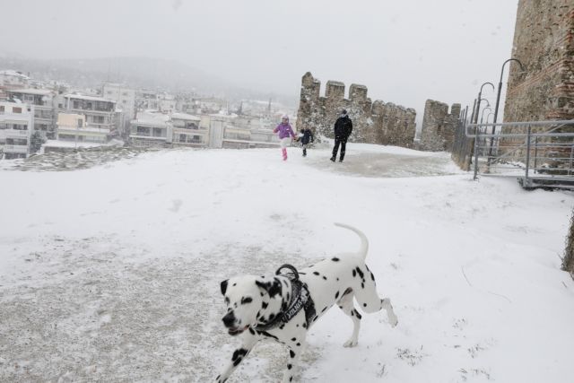 Γονείς με τα παιδιά τους, ζευγάρια αλλά και παρέες βγήκαν σε κεντρικά σημεία (και όχι μόνο), όπως η Νέα Παραλία, η Άνω Πόλη και η πλατεία Αριστοτέλους παίζοντας χιονοπόλεμο και κάνοντας μέχρι και… snowboard.
