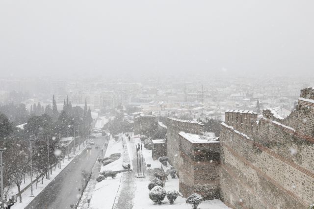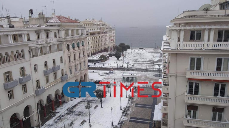 Στα “λευκά” ντύθηκε και το κέντρο της Θεσσαλονίκης, αφού η πυκνή χιονόπτωση κάλυψε μέχρι και τα πεζοδρόμια στην παραλία της πόλης. Η Τροχαία διακόπτει την κυκλοφορία, όπου διεξάγεται με δυσκολία ή είναι αδύνατη η κίνηση των οχημάτων.