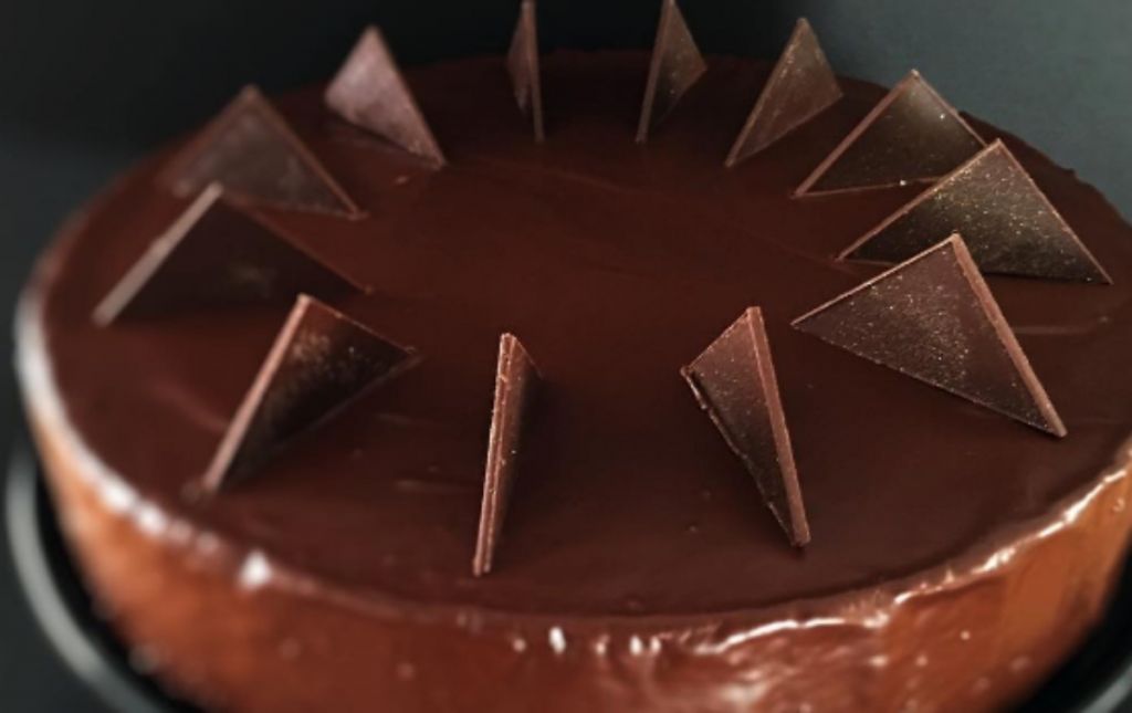 7. Για το γλάσο σοκολάτας ζεσταίνουμε την κρέμα γάλακτος μέχρι να αρχίσει να κάνει φουσκάλες στις άκρες της κατσαρόλας. Τη βγάζουμε από τη φωτιά, προσθέτουμε τη σοκολάτα και ανακατεύουμε μέχρι να λιώσει εντελώς. Αφήνουμε να κρυώσει και να πήξει και την αλείφουμε στην τούρτα. Δεν τη βάζουμε στο ψυγείο.