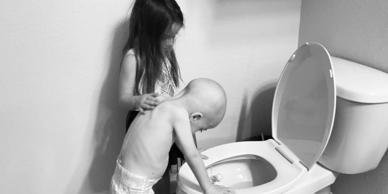 Και δίπλα του ένα άλλο αγόρι, λίγο μεγαλύτερο με πολλά προβλήματα από τις θεραπείες, καταβεβλημένο. Και τα δύο αυτά παιδιά να βοηθάνε το ένα το άλλο, να γελάνε δυνατά και να τρέχουν στο διάδρομο.