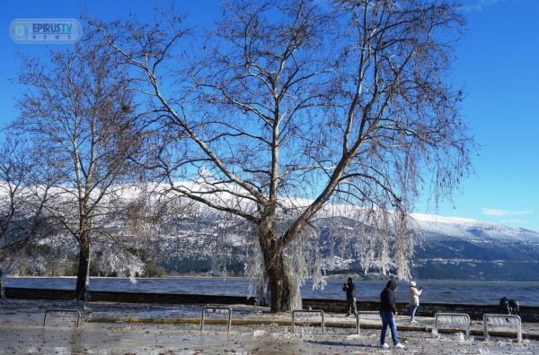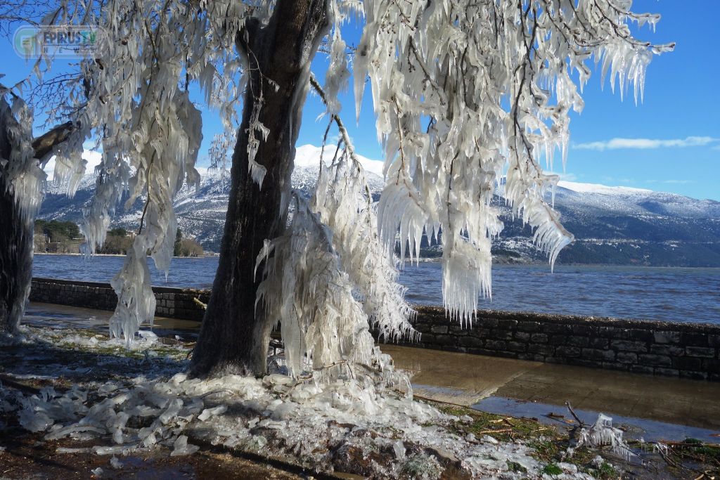 Οι αρνητικές θερμοκρασίες που επικρατούν σε συνδυασμό με τους ισχυρούς ανέμους που έπνεαν χθες το βράδυ στο λεκανοπέδιο των Ιωαννίνων μετέτρεψαν σε παγοδρόμιο τμήματα στο παραλίμνιο.