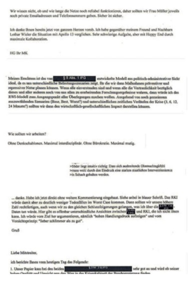 Το απόρρητο αυτό κείμενο εργασίας των επιστημόνων συντάχθηκε μόλις σε τέσσερις μέρες. Αργότερα, τον Απρίλιο αναρτήθηκε στο επίσημο ιστότοπο του υπουργείο Εσωτερικών της Γερμανίας. Το σοβαρό είναι ότι οι επιστήμονες «διαπραγματεύτηκαν» μεταξύ τους για τον πιθανό αριθμό θνησιμότητας που πρέπει να αναφερθεί.