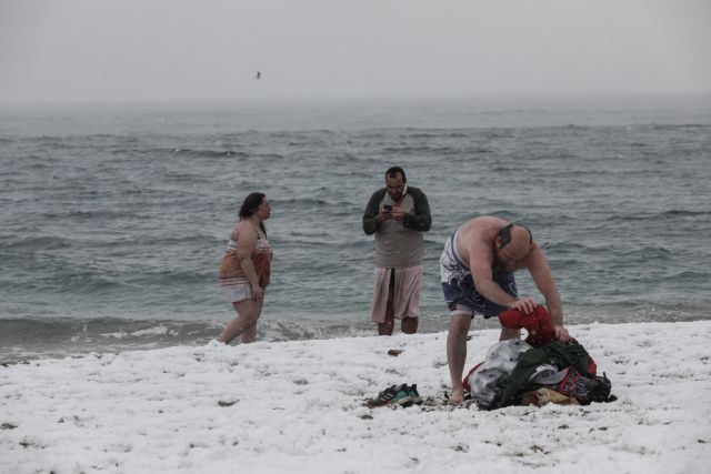 Οι θερμοκρασίες είναι πολύ χαμηλές, όμως το κρύο τσουχτερό δεν φαίνεται να πτόησε τους χειμερινούς κολυμβητές που βούτηξαν για το καθιερωμένο μπάνιο τους στην παραλία Αλίμου.
