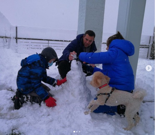 Ο πρόεδρος του ΣΥΡΙΖΑ ανάρτησε στο προφίλ του στο Instagram φωτογραφίες όπου παίζει με τα χιόνια μαζί με τους δύο γιους του στο λευκό τοπίο του σπιτιού τους.