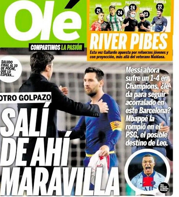 Η κορυφαία εφημερίδα της Αργεντινής, «Ole», μέσω της πρώτης σελίδας της αναφέρεται στον Λιονέλ Μέσι και τον καλεί να φύγει από τους «μπλαουγκράνα».