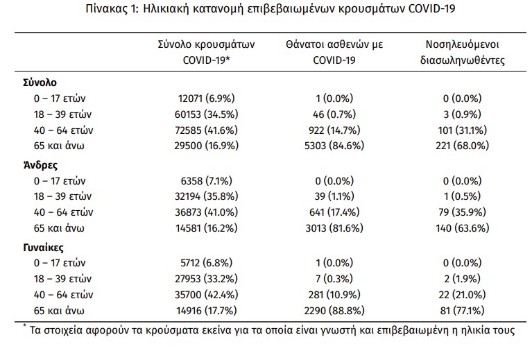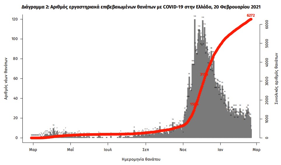 Οι νέοι θάνατοι ασθενών με COVID-19 είναι 23, ενώ από την έναρξη της επιδημίας έχουν καταγραφεί συνολικά 6.272 θάνατοι. Το 95.7% είχε υποκείμενο νόσημα ή/και ηλικία 70 ετών και άνω.
