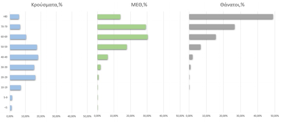 Η διάμεση ηλικία των κρουσμάτων είναι 44 έτη (εύρος 0.2 έως 105 έτη), ενώ η διάμεση ηλικία των θανόντων είναι 79 έτη (εύρος 15 έως 103 έτη).