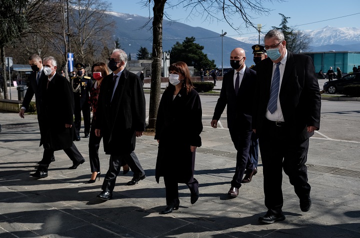 Το πρωί, μετά την κατάθεση στεφάνου στο Μνημείο Μπιζανομάχων, η Πρόεδρος της Δημοκρατίας πραγματοποίησε εθιμοτυπικές επισκέψεις στην Περιφέρεια Ηπείρου και το Δημαρχείο.