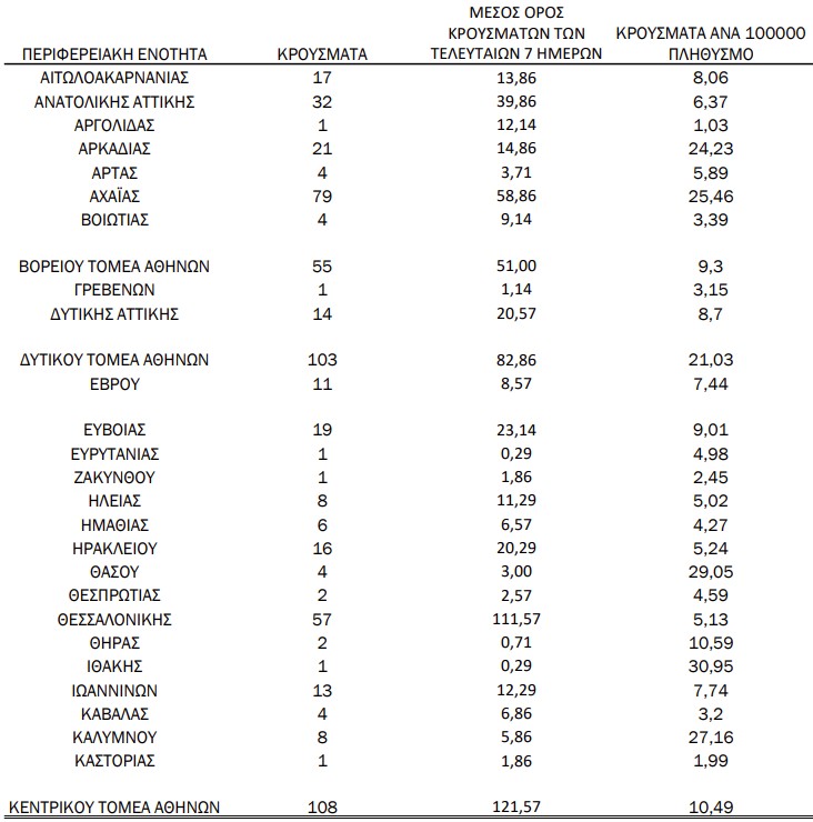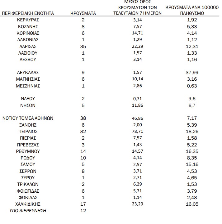 Δείτε την κατανομή των κρουσμάτων στην υπόλοιπη Ελλάδα
