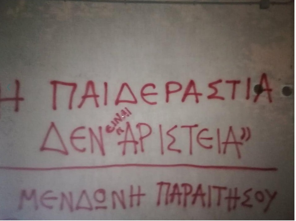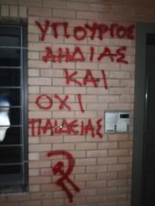 Συνθήματα με σπρέι στους τοίχους της εισόδου του πολιτικού γραφείο της υπουργού Παιδείας, Νίκης Κεραμέως έγραψαν άγνωστοι της Δευτέρα.
