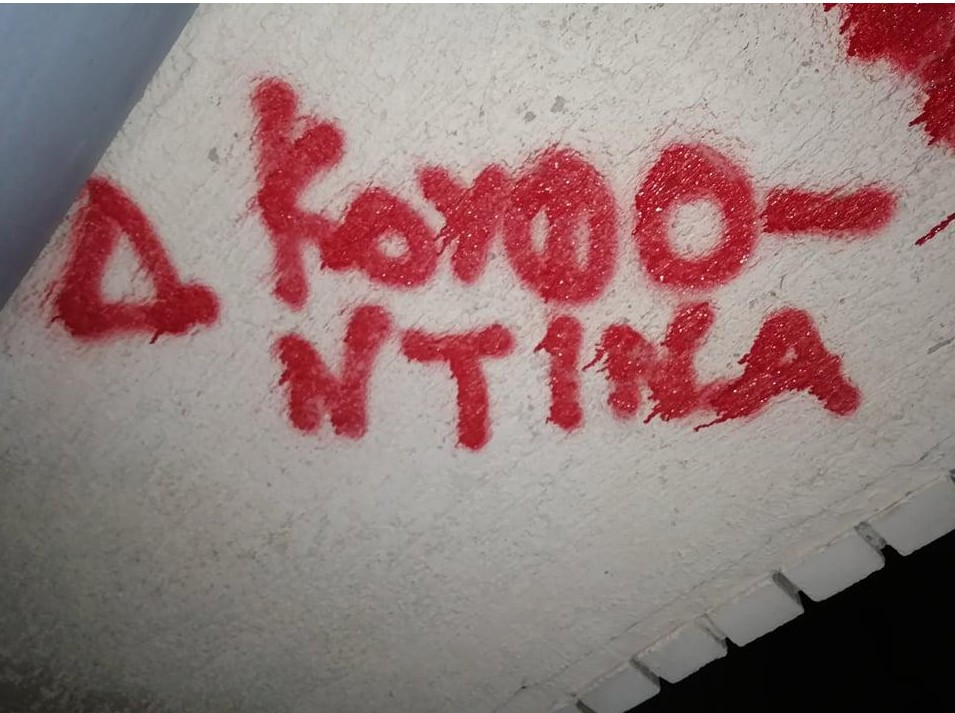 Συνθήματα με μπογιές στο πολιτικό γραφείο της Νίκης Κεραμέως