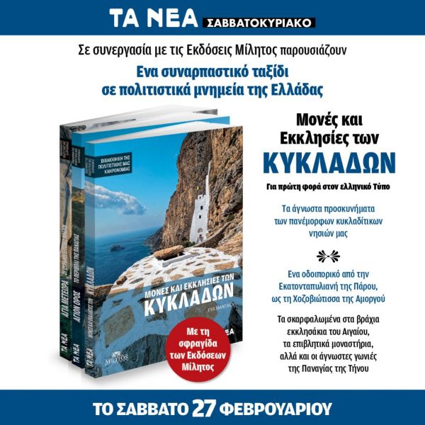 ΤΑ ΝΕΑ Σαββατοκύριακο παρουσιάζουν για πρώτη φορά στον ελληνικό Τύπο, τα άγνωστα Προσκυνήματα των πανέμορφων κυκλαδίτικων νησιών μας, με τη σφραγίδα των Εκδόσεων Μίλητος.